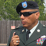 Jesse R. Acosta, born in East Los Angeles and raised in Santa Fe Springs he comes from humble beginnings. In December of 1975 at the age of 18 Jesse enlisted into the US Army. Soon after he graduated Basic Training and Infantry school (11B). In May of 1976, Acosta was attached to 2/39th Infantry Division at Ft. Lewis Washington. In June of 1978 then a Corporal he was transferred to the 187th Combat Support Unit in Baumholder, Germany. In December of 1979 he earned his well deserved Sergeant stripes, he re-enlisted and reclassified as a Multi Channel Communications Operator (31M) at the School of Communications at Ft. Gordon, GA. In 1980, Acosta was assigned to HQ, HQ Battery 2/55th Air Defense Artillery out of Ft. Bliss, TX. He separated from the active military after completing his second contract November 15, 1982. He took a two year break then realized that it wasn’t time to throw in the towel and enlisted in the Army Reserve. He enlisted as a Sergeant and was signed to D Co. 14th Combat Engineers out of El Monte, CA. He was promoted to Staff Sergeant in 1986 and was assigned to the 349th General Hospital out of Los Angeles, CA. He was promoted to Sergeant First Class in 1991 and received the position of interim 1SG (1st Sergeant) from 1996-1998. In July of 1998 1SG Acosta was assigned to the 3rd BN (Battalion) 3/62nd with the 91st Training Support BN, out of Norco, CA where he was promoted to Master Sergeant. He only managed to stay one year before he was requested by name to return to the 349th General Hospital as their 1SG. Upon his return he attended Combat Medic School (91W) and graduated from the 1SG Academy. In June 2003, 1SG Acosta joined the Individual Ready Reserve program and remained there until he was called to active duty for Mobilization with the 376th AG BN DET. 4 (Adjutant General Battalion Detachment 4) June 2005. The 376th AG BN DET. 4 mobilized in support of Operation Iraqi Freedom August 20, 2005. The unit was assigned to LSA (logistical support area) Anaconda in Balad, the largest support base in Iraq. 1SG Acosta received his hard-earned promotion to SGM (Sergeant Major) effective January 01, 2006. On January 16, 2006, SGM Acosta was wounded in a mortar attack on LSA Anaconda. The most severe of his injuries are the loss of sight in his right eye and the loss of vision in his left eye. His Military education includes the Primary Leadership Development Course (PLDC), Basic Non Commissioned Officer Course (BNCOC), Advanced Non Commissioned Officer Course (ANOC), and the 1SG Academy. He also attended Infantry School (11B), Multi Channel Communications Operator School (31M) and Combat Medic School (91W). SGM Acosta’s awards include the Purple Heart, Bronze Star, Meritorious Service Medal, (6) Army Commendation Medal, (3) Army Achievement Medals, (3) Army Good Conduct Medal, (6) Army Reserve Component Achievement Medal, (2) National Defense Service Medal, the Iraqi Campaign Medal, the Global War on Terrorism Service Medal, the Armed Forces Reserve Medal with a Silver Hourglass and the “ M” device, the Army Noncommissioned Officer Professional Development Ribbon with the number “3”, the Army Service Ribbon, the Army Overseas Service Ribbon, the Reserve Component Overseas Training Ribbon and the Combat Action Badge.
